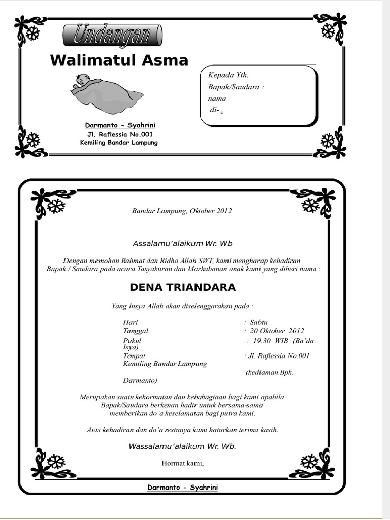 Ucapan syukuran pemberian nama anak nusagates. Ucapan kelahiran anak kami inspirasi kartu ucapan pemberian nama. Jual souvenir ucapan terimakasih kartu nama kartu syukuran nama anak. Pemilihan nama bagi calon buah hati untuk pasangan baru tentunya tidak mudah dan bisa memakan waktu yang lama. Hadis pemberian nama di hari pertama bayi lahir Nah tanpa panjang lebar berikut ini kami menyajikan 500 contoh undangan syukuran pemberian nama bayi gratis terbaru. Dengan adanya kartu ucapan aqiqah bayi tersebut maka para tetangga serta warga setempat mengetahui nama bayi seseorang yang baru dilahirkan tersebut. Perlu anda ketahui bahwa pemberian nama itu sangat penting sekali, sebab nama adalah doa. Hallo teman , dalam posting kali ini aku ingin mengembangkan contoh desain kartu syukuran bayi yang mungkin sedang anda cari untuk desain yang berafiliasi desain ini dapat anda edit sesuka hati memakai. 29112015 pada kesempatan kali ini saya akan membagikan 72 contoh undangan syukuran bayi. Perlu anda ketahui bahwa pemberian nama itu sangat penting sekali, sebab nama adalah doa. Undangan aqiqah dan kartu ucapan aqiqah ms word download gratis. Membuat kartu ucapan dengan microsoft word 2007 ilmukomputertips anak diberi nama gopay go jek indonesia beri saldo gratis setahun.